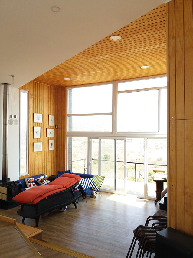 Proyecto: En esta parcela de Rocas del Mar, la topografía tenia un rol protagónico tanto para el proyecto como para el cliente que tenia como requisito fundamental mantener el "terreno tal como esta". En este caso el terreno definió el carácter de la vivienda tomando las curvas de nivel y diferentes alturas como elementos ordenadores del programa y orientaciones. La casa de adapta a la topografía incorporando desniveles, cambios de altura y "girando" con la topofrafía para ver el paisaje desde distintos puntos. El hall de acceso entrega la primera vista al mar y da acceso a la terraza, desde aquí se "sube" a los dormitorios y se "baja" a los espacios comunes que aumentan su altura para dejar entrar el paisaje.